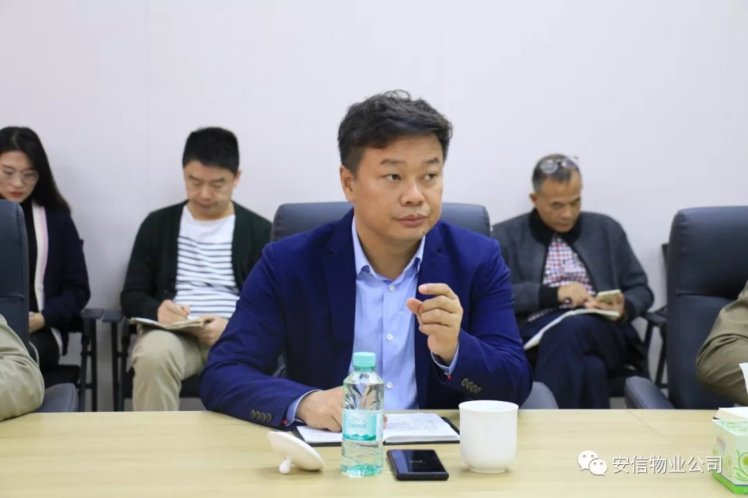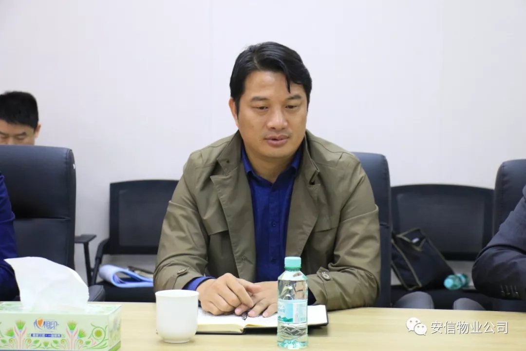 吳洪偉指出,安信物業公司首先要切實轉變思想觀念,改進團隊工作作風,積極主動融入到地產集團的發展當中;其次,要抓住主要矛盾推進重點工作,加快提升服務品質;最后,要深入謀劃明年工作,保障公司各項經營指標穩步提升。
