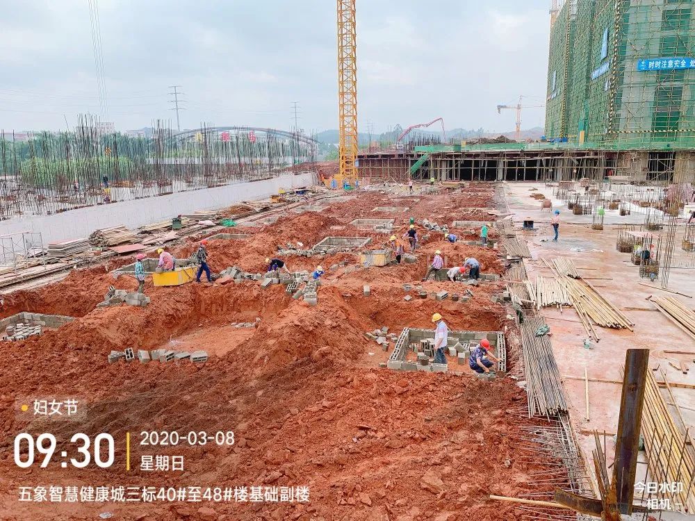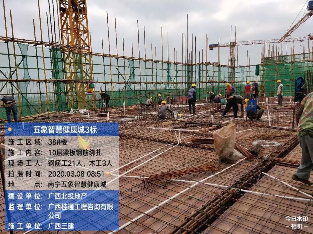 3月初全面復(fù)工以來,項(xiàng)目總經(jīng)理李政按照公司“冬天失去的,春天追回來”的部署要求,一改以往朝去晚回的上班模式,帶頭駐扎項(xiàng)目部,吃住都在現(xiàn)場(chǎng),帶領(lǐng)項(xiàng)目全體員工以“白加黑、5+2”模式堅(jiān)守一線崗位日夜組織施工,利用晚上的時(shí)間組織學(xué)習(xí)討論、解決問題、加快準(zhǔn)備辦理預(yù)售許可證的各項(xiàng)材料。在整個(gè)3月份,陸續(xù)完成了33B#、35#、38#、37#、39#、43A#樓主體結(jié)構(gòu)的封頂。3月13日、15日分別取得222套高層住宅、91套排屋預(yù)售許可證,并迅速組織面市銷售。受疫情影響,3月份各大樓盤成效低迷,而五象智慧健康城的成交表現(xiàn)卻分外惹眼。據(jù)統(tǒng)計(jì),截至3月31日銷售237套,銷售金額2.58億元,當(dāng)月實(shí)現(xiàn)回款1.52億元, 4次入圍南寧市城區(qū)周度單盤TOP10。