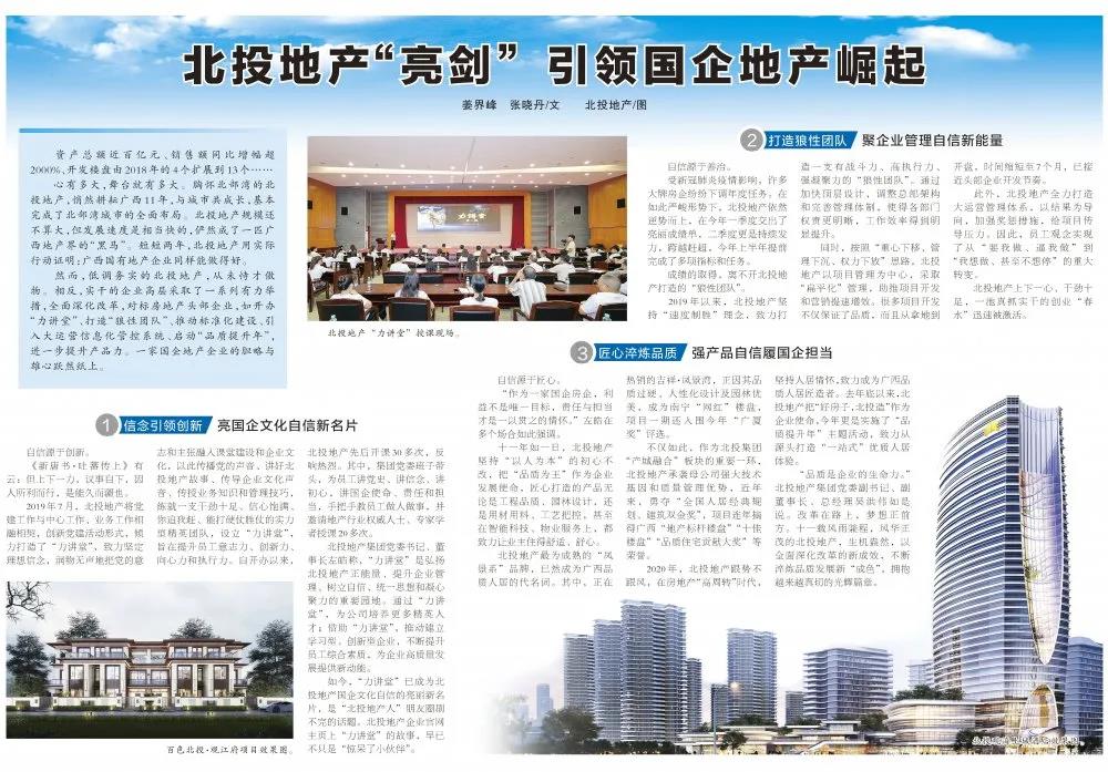 “品質(zhì)是企業(yè)的生命力”北投地產(chǎn)集團黨委副書記、副董事長、總經(jīng)理吳洪偉如是說。改革在路上,夢想正前方。十一載風(fēng)雨兼程,風(fēng)華正茂的北投地產(chǎn),生機盎然,以全面深化改革的新成效,不斷淬煉品質(zhì)發(fā)展新“成色”,擁抱越來越真切的光輝篇章。(廣西日報)2020/08/07