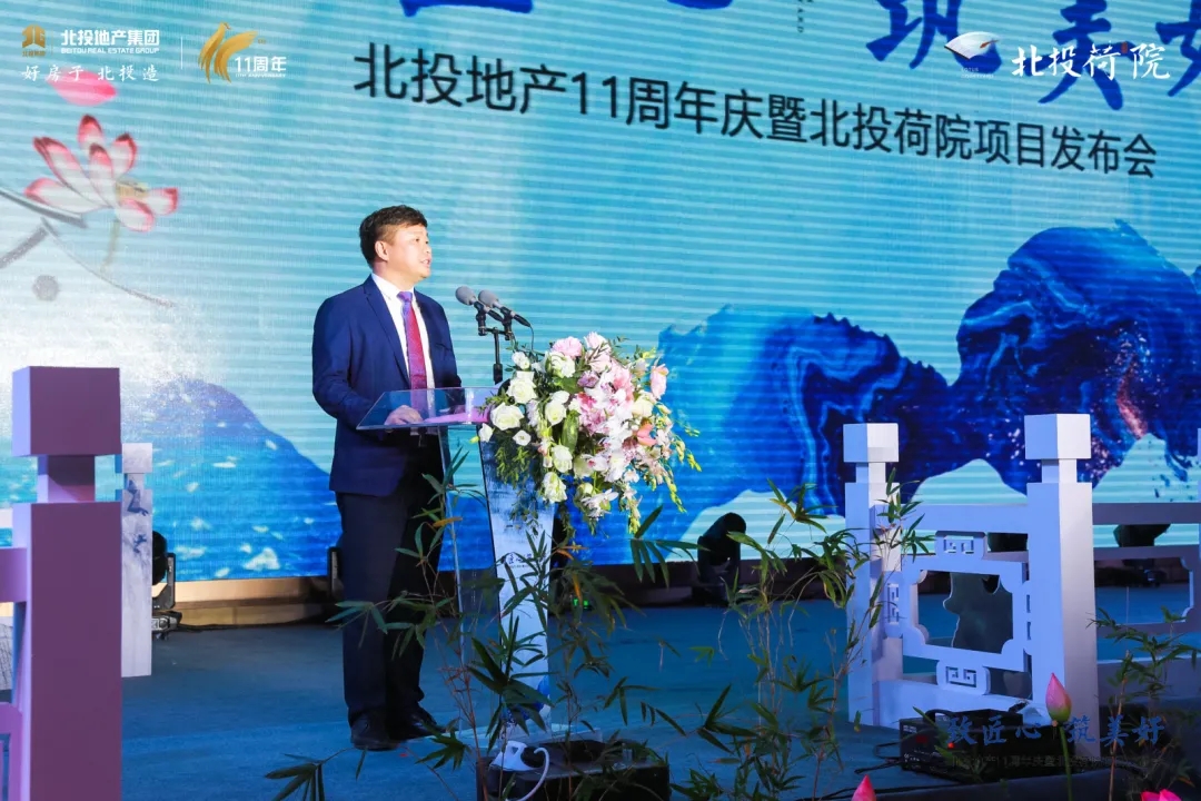 北投集團黨委書記、董事長朱堅和對北投地產11周年慶暨北投荷院產品發布會的順利舉辦表示祝賀,代表北投集團向頑強拼搏、奮力追夢的北投地產全體員工致以親切慰問。