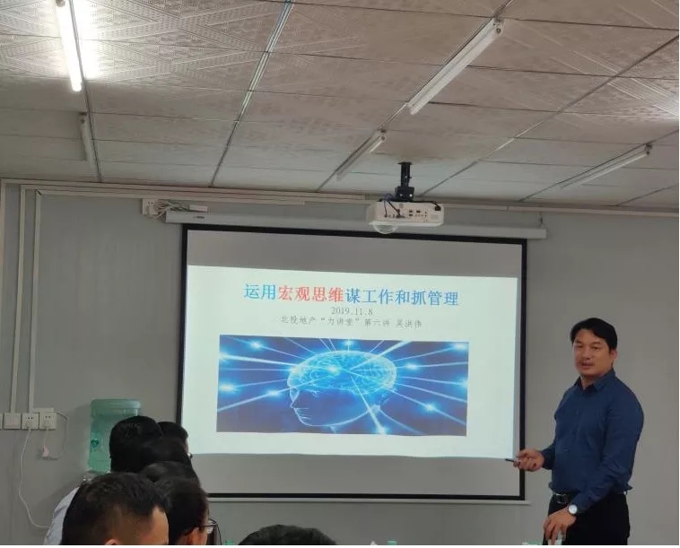 為全面提升公司中高層人員房地產(chǎn)業(yè)務(wù)管理技能,推動公司高質(zhì)量發(fā)展,北投地產(chǎn)集團2019年“力講堂”之后規(guī)模時代的地產(chǎn)戰(zhàn)略破局專題培訓(xùn)在公司會議室舉行。培訓(xùn)邀請了明源地產(chǎn)研究院高級咨詢顧問、講師,南寧明源總經(jīng)理林杰峰授課。他通過政策、數(shù)據(jù)和案例來分析地產(chǎn)行業(yè)面臨的五大新常態(tài),提出了六大應(yīng)對措施,以自身對地產(chǎn)行業(yè)的深刻理解,分析了地產(chǎn)行業(yè)發(fā)展的新邏輯,并為北投地產(chǎn)集團及各直屬單位今后的運營管理發(fā)展提供了參考和建議。