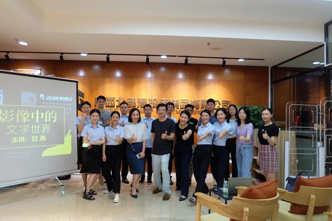 8月24日晚,由廣西北部灣投資集團有限公司主辦,廣西北投地產集團有限公司承辦,廣西北投地產集團機關團支部協辦的“影像中的文學世界”讀書交流活動,在北投集團新時代文明實踐所舉行,活動旨在全面宣傳全民閱讀,豐富公司員工精神文化生活、活躍企業文化建設,營造濃厚的讀書氛圍,真正讓新時代文明實踐內化于心、外化于形,在群眾中落地生根、開花結果。