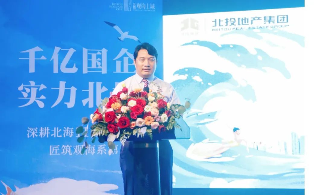 在酷炫多變的燈光秀與現(xiàn)場小提琴的優(yōu)美演奏中,北投觀海上城品牌發(fā)布會隆重拉開帷幕。發(fā)布會首先由吳洪偉現(xiàn)場致辭,表達了北投地產(chǎn)集團深耕北海的決心,他說,在北海未來的發(fā)展中,北投地產(chǎn)集團將承擔起國企責任,為北海再添助力,鑄就北海美好未來!隨后,吳洪偉從新穎的城市發(fā)展視角,用犀利而獨到的觀點,為現(xiàn)場賓客全面解讀了北海城東未來發(fā)展趨勢。