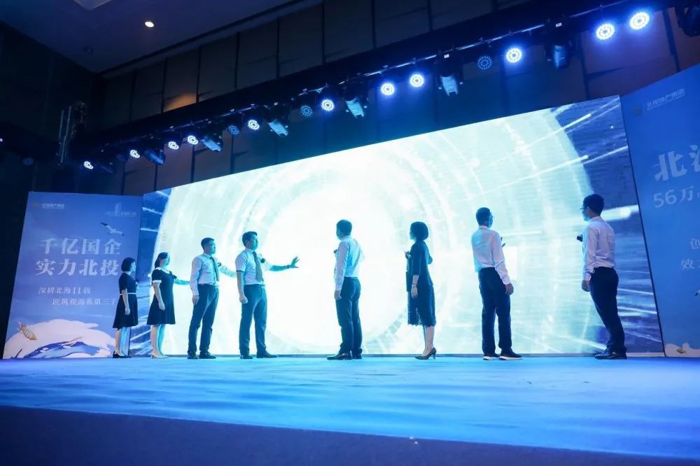 在熱烈的氛圍中,北投地產(chǎn)集團領導及向海公司領導班子登臺,正式啟動品牌發(fā)布儀式。自此,北投集團觀海系第三子——北投觀海上城,正式C位出道!