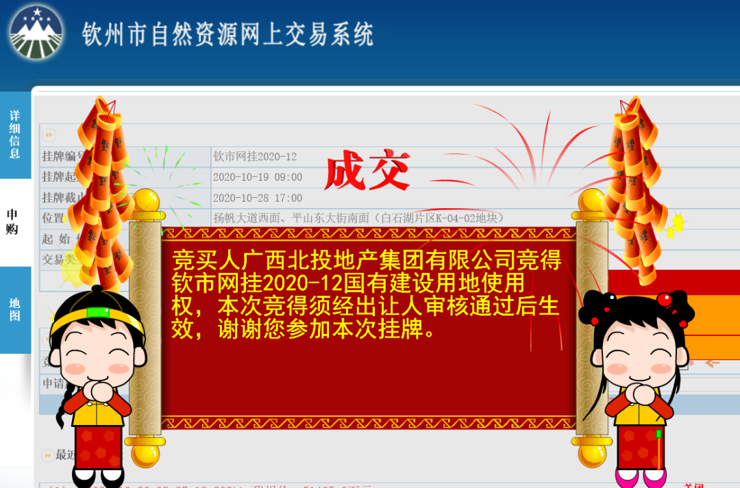 10月28日下午,北投地產(chǎn)集團(tuán)以底價(jià)51,465萬元成功摘得欽州市白石湖片區(qū)198畝優(yōu)質(zhì)土地(宗地號:欽市網(wǎng)掛2020-12),成交每畝單價(jià)260萬/畝(折合樓面地價(jià)1114元/㎡)。