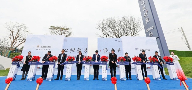 當天上午10時,北投地產集團黨委書記、董事長左皓,黨委副書記、副董事長、總經理吳洪偉,攜領導班子成員為北投荷院營銷中心開放儀式剪彩。