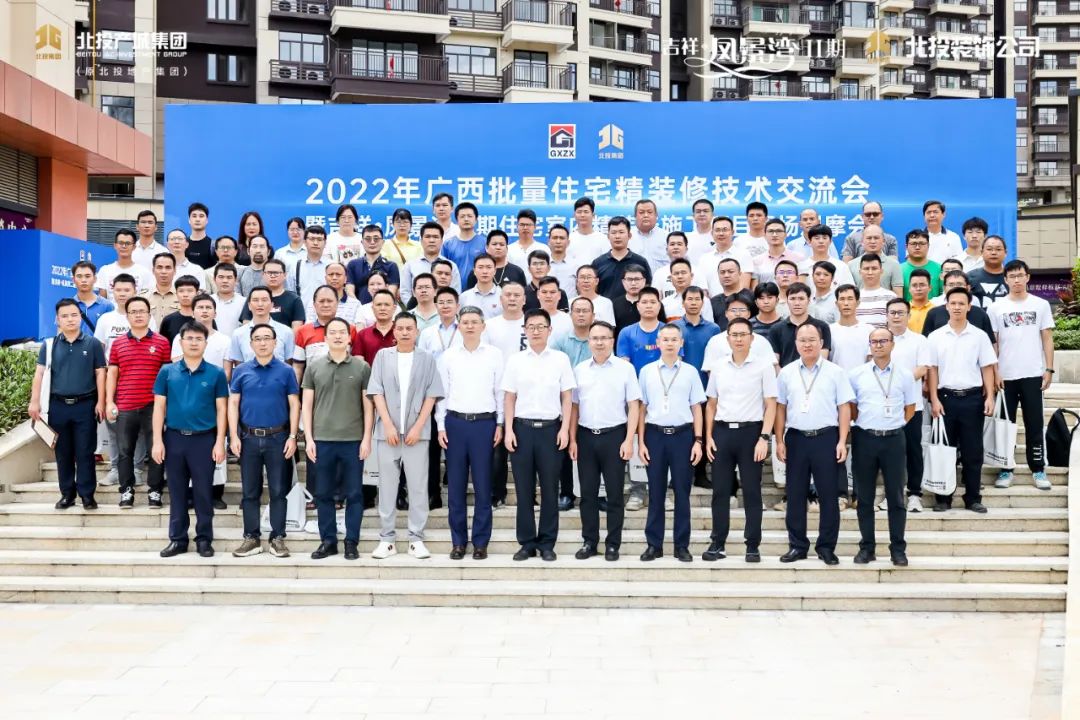 8月28日上午,由自治區住建廳建筑市場監管處指導、廣西建筑裝飾協會主辦、北投裝飾公司承辦的2022年廣西批量住宅精裝修技術交流會暨吉祥·鳳景灣二期住宅室內精裝修施工項目現場觀摩會,在北投產城集團旗下吉祥·鳳景灣項目順利舉辦。來自區內外建筑裝飾行業的專家、嘉賓和企業代表共100余人參加此次活動。